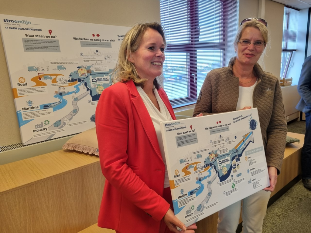 Op woensdag 21 september jl. bracht een 6-koppige delegatie van de Directie Duurzame Mobiliteit van het Ministerie van IenW een bezoek aan een afvaardiging van het H2 Innovatietafelnetwerk. De delegatie, onder aanvoering van Directeur Petrouschka Werther, reisde duurzaam met de trein vanuit Den Haag naar station Dordrecht waar zij door twee waterstofauto’s van de firma Berkman werd opgewacht en vervoerd naar het H2 tankstation in aanbouw van BP van Twist. Na een korte kennismaking met de daar al aanwezige overige genodigden en een toelichting op de bouwwerkzaamheden werd het werkbezoek voortgezet bij Stroomlijn.